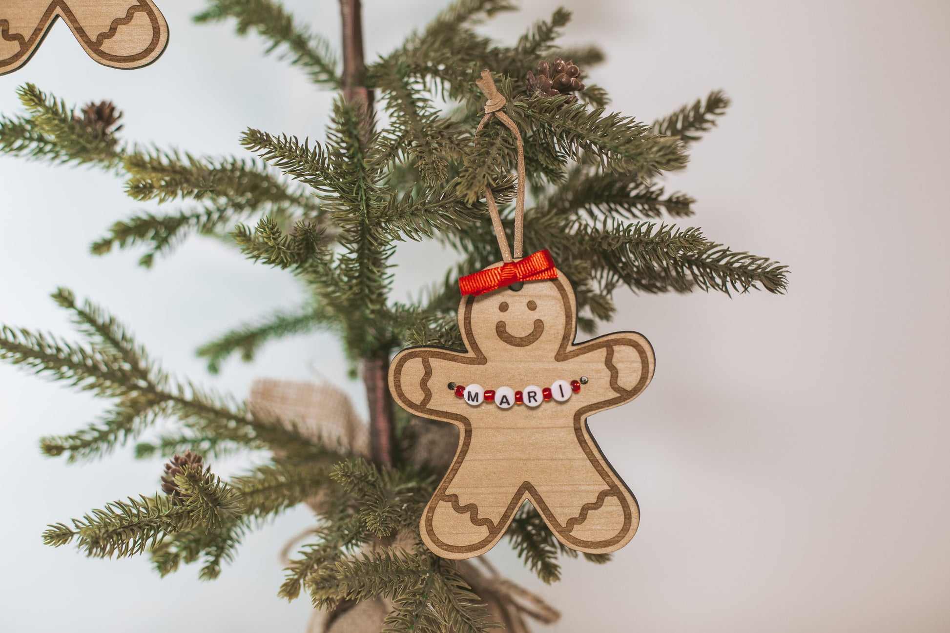 Custom Gingerbread Wooden Holiday Ornament with Personalized Name Beads